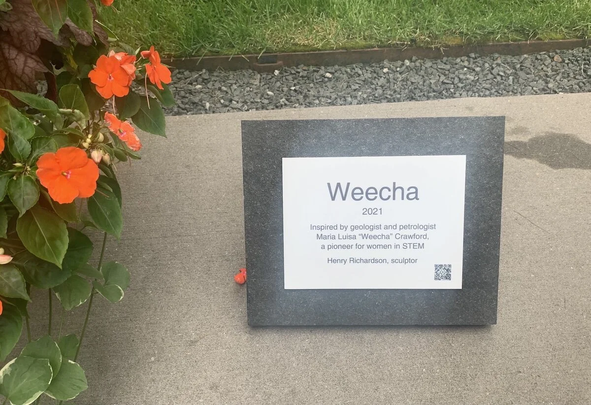 Weecha is inspired by my thesis advisor, the renowned geologist Maria Luisa “Weecha” Crawford. Crawford was a pioneer for women in STEM. Weecha is currently on loan to Barnard College of Columbia University in conjunction with the recently-announced Barnard Year of Science.